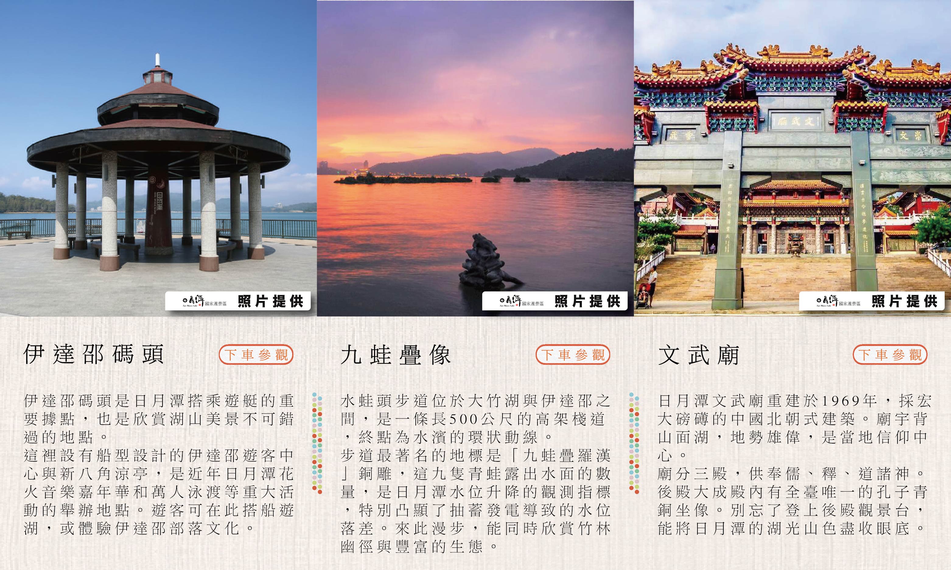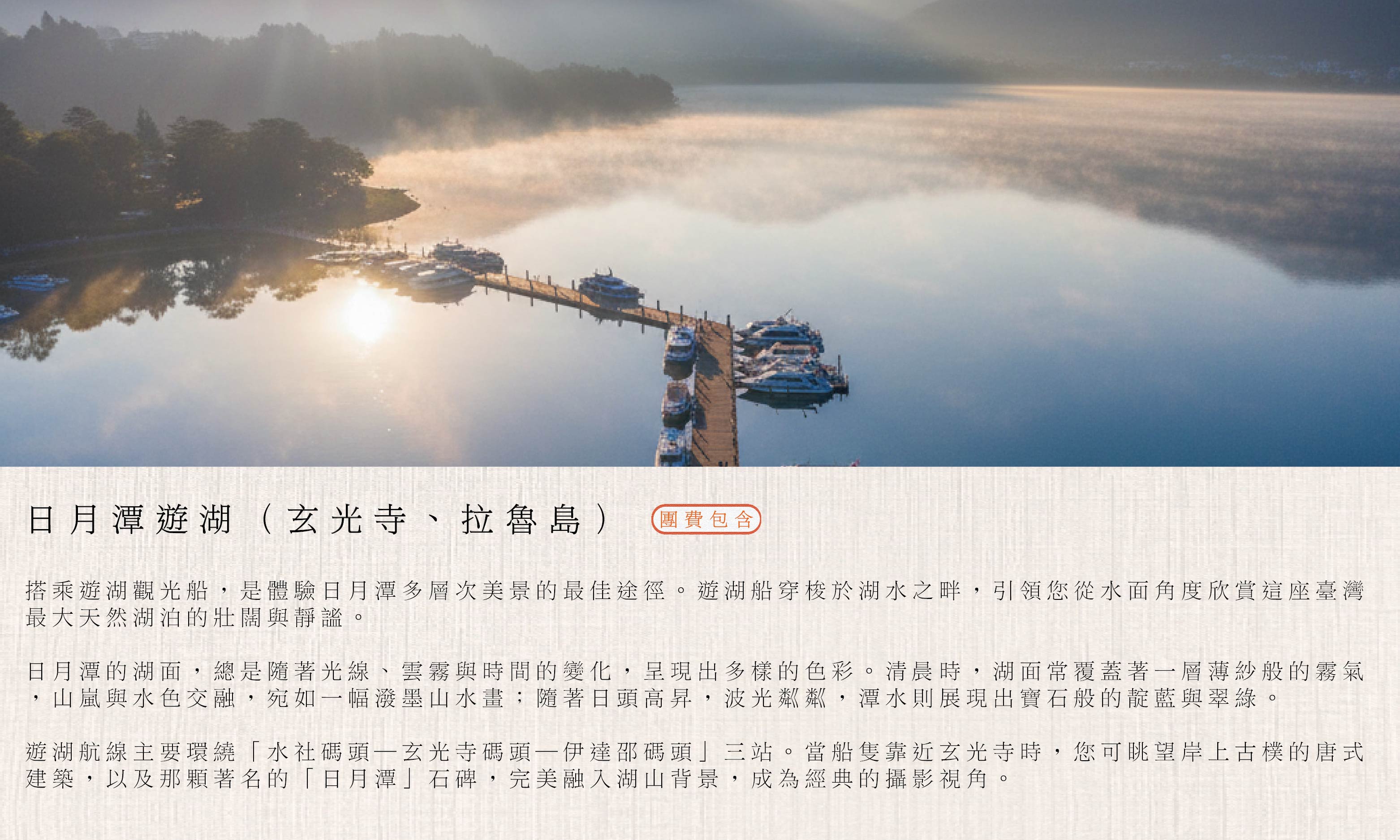 從台中高鐵優雅啟程,首站來到紹興原鄉「埔里酒廠」,在微醺香氣中開啟旅程。隨後抵達日月潭伊達邵碼頭品嚐在地風味,並搭乘專船遊湖,從水路視角仰望拉魯島與玄光寺。午後漫步於清水模建築美學的向山遊客中心,尋找驚喜的九蛙疊像,最後在文武廟的觀景台俯瞰整片湛藍湖景。全程賓士包車到府接送,讓您無需煩惱停車與交通,專注享受南投的山水之美 .ᐟ.ᐟ.ᐟ(若欲規劃兩日遊或入住飯店請洽業務,另有散拼團,6人成行)