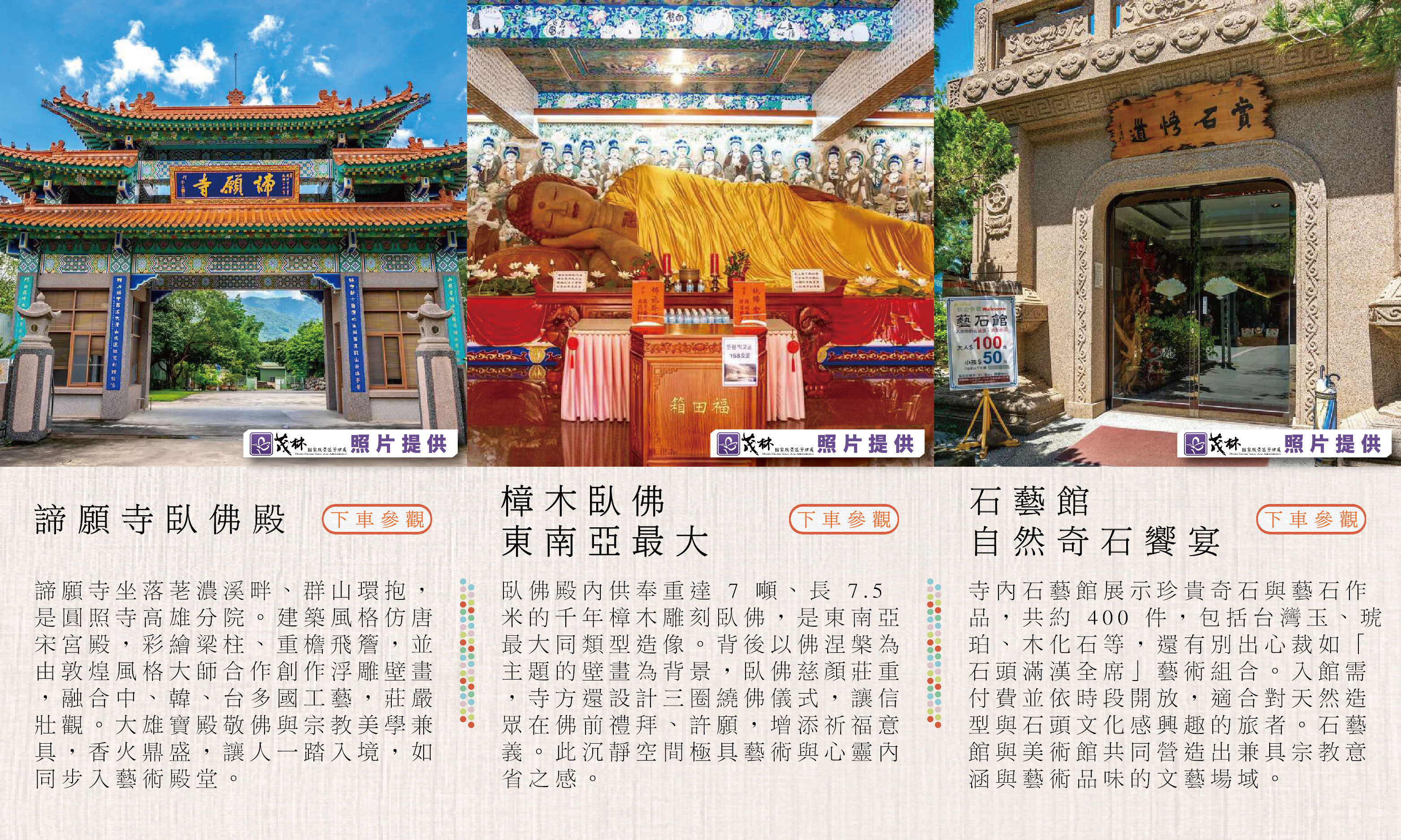 在高雄的十八羅漢山探索六龜秘境,參訪諦願寺臥佛殿與六龜老街的在地人情,品味尹家有機農場的健康蔬食饗宴,沉浸於多多鳥生態濕地的自然生態之旅.全程由賓士專車到府接送,讓您品味六龜山城的療癒生態旅行的美好 .ᐟ.ᐟ.ᐟ( 若遇未開團日期請洽業務,另有散拚團,4人成行 )