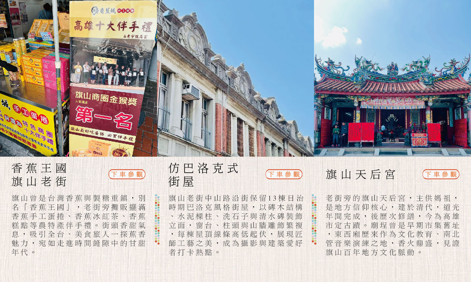 在高雄的佛陀紀念館和蓮池潭龍虎塔感受信仰洗禮,漫遊旗山老街品味香蕉風味,體驗美濃民俗村的客家擂茶,探索烏山頂泥火山的自然奇觀.全程由賓士專車到府接送,讓您品味高屏山城的藝術文化旅行的美好 .ᐟ.ᐟ.ᐟ( 若遇未開團日期請洽業務,另有散拚團,4人成行 )