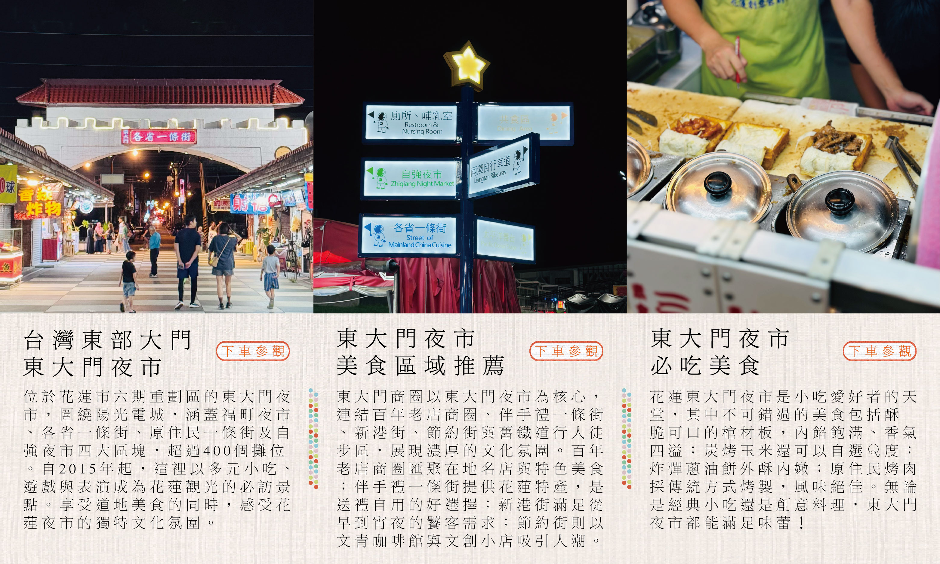 第一天 𝐹𝑖𝑟𝑠𝑡 𝐷𝑎𝑦啟程 ⟡ 到府接送 / 花蓮火車站 ⇀ 東海岸巡禮 ♡ 蕃薯寮瞭望台〖 一覽太平洋絕景 〗⇀ 長虹橋&石梯坪〖 地質奇景 〗⇀ 忘憂秘境 ♡ 牛山呼庭 ⇀ 將軍府 1936 園區 ⇀ 全台夜市王冠軍 ♡ 東大門夜市 ⇀ 金澤居民宿