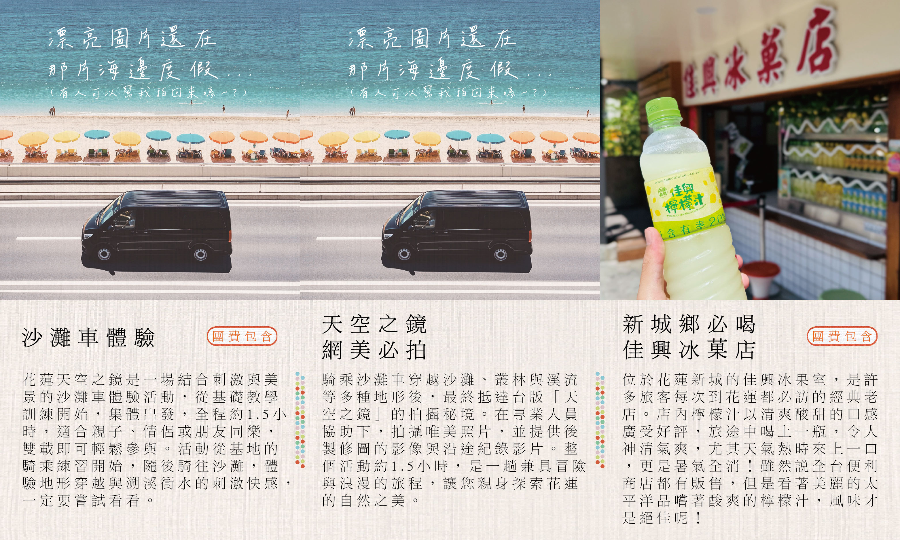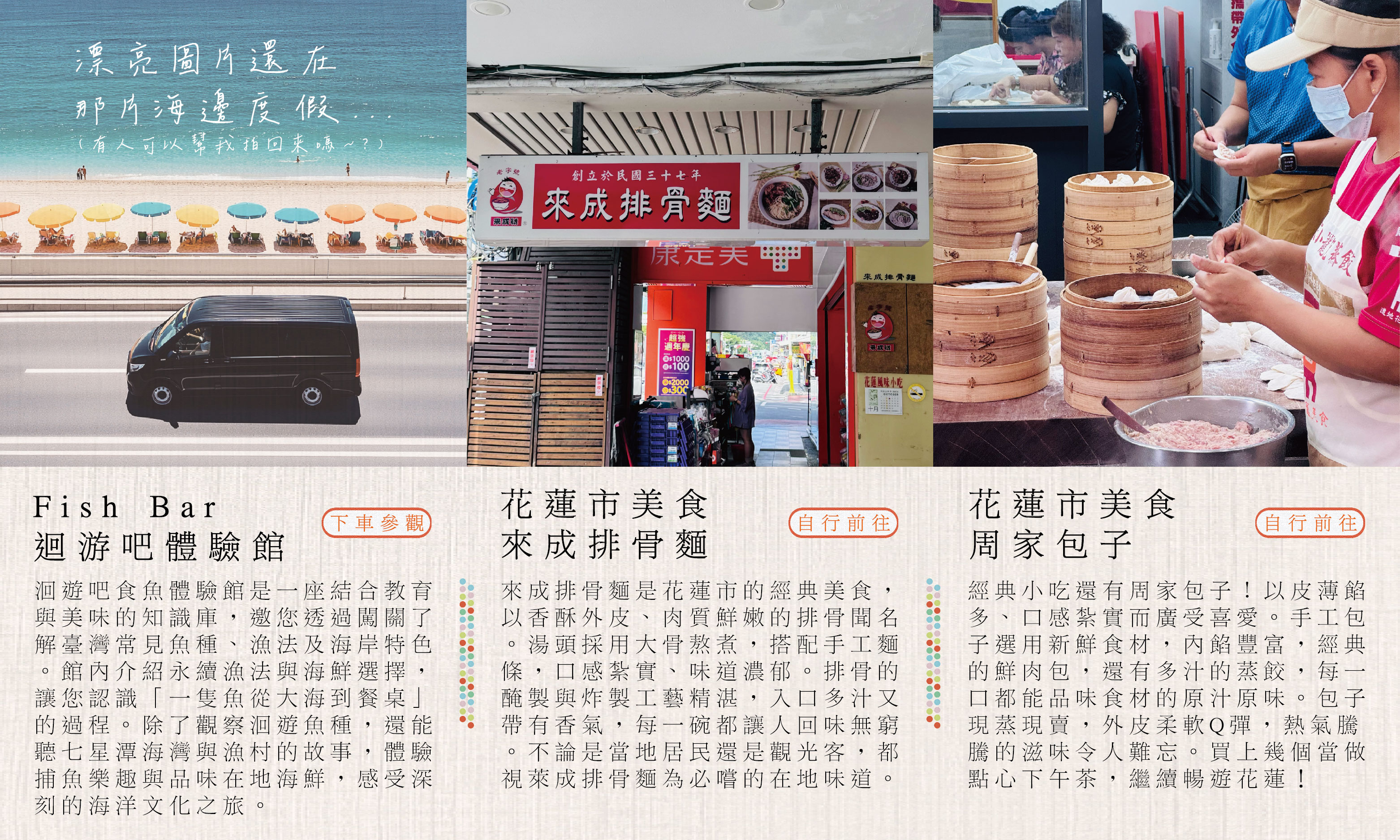 在花蓮縣的東海岸線巡禮絕美太平洋,沉浸於花蓮海洋公園的海洋世界與鯨豚表演,品味東大門夜市的冠軍美食,探索石梯坪的地質奇景和奇萊鼻燈塔的純白浪漫.全程由賓士專車到府接送,讓您品味花蓮山海的親子冒險旅行的美好 .ᐟ.ᐟ.ᐟ( 若遇未開團日期請洽業務,另有散拚團,6人成行 )