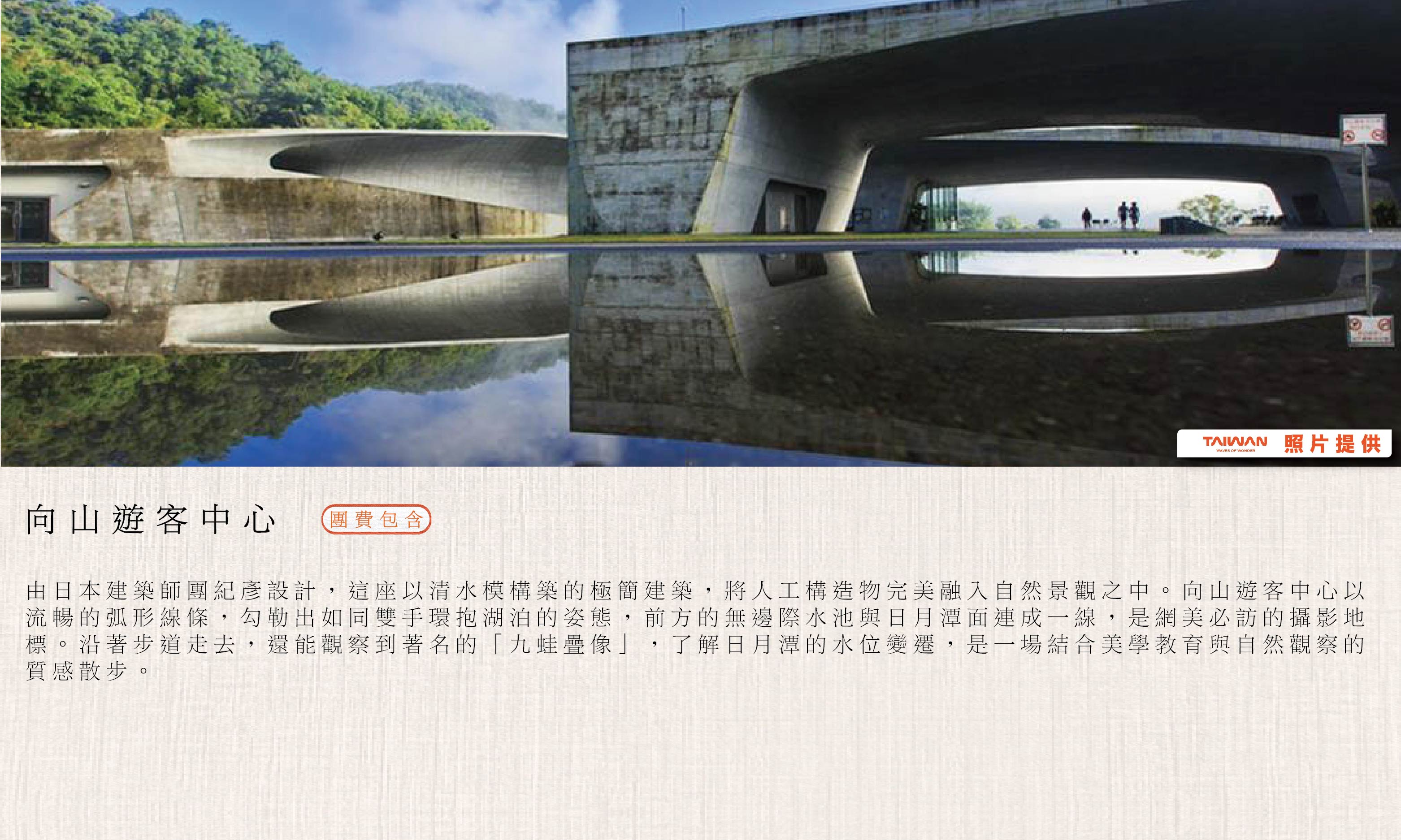 從台中高鐵優雅啟程,首站來到紹興原鄉「埔里酒廠」,在微醺香氣中開啟旅程。隨後抵達日月潭伊達邵碼頭品嚐在地風味,並搭乘專船遊湖,從水路視角仰望拉魯島與玄光寺。午後漫步於清水模建築美學的向山遊客中心,尋找驚喜的九蛙疊像,最後在文武廟的觀景台俯瞰整片湛藍湖景。全程賓士包車到府接送,讓您無需煩惱停車與交通,專注享受南投的山水之美 .ᐟ.ᐟ.ᐟ(若欲規劃兩日遊或入住飯店請洽業務,另有散拼團,6人成行)